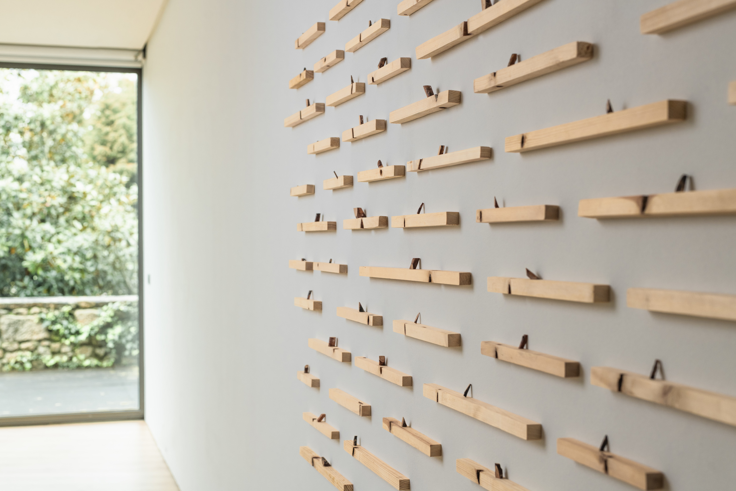 Dalila Gonçalves. Dissecar (Diseccionar), 2019 Ficha técnica 112 x 257 cm Maderas y sus nudos carolina2026-03-24T10:20:58+01:00