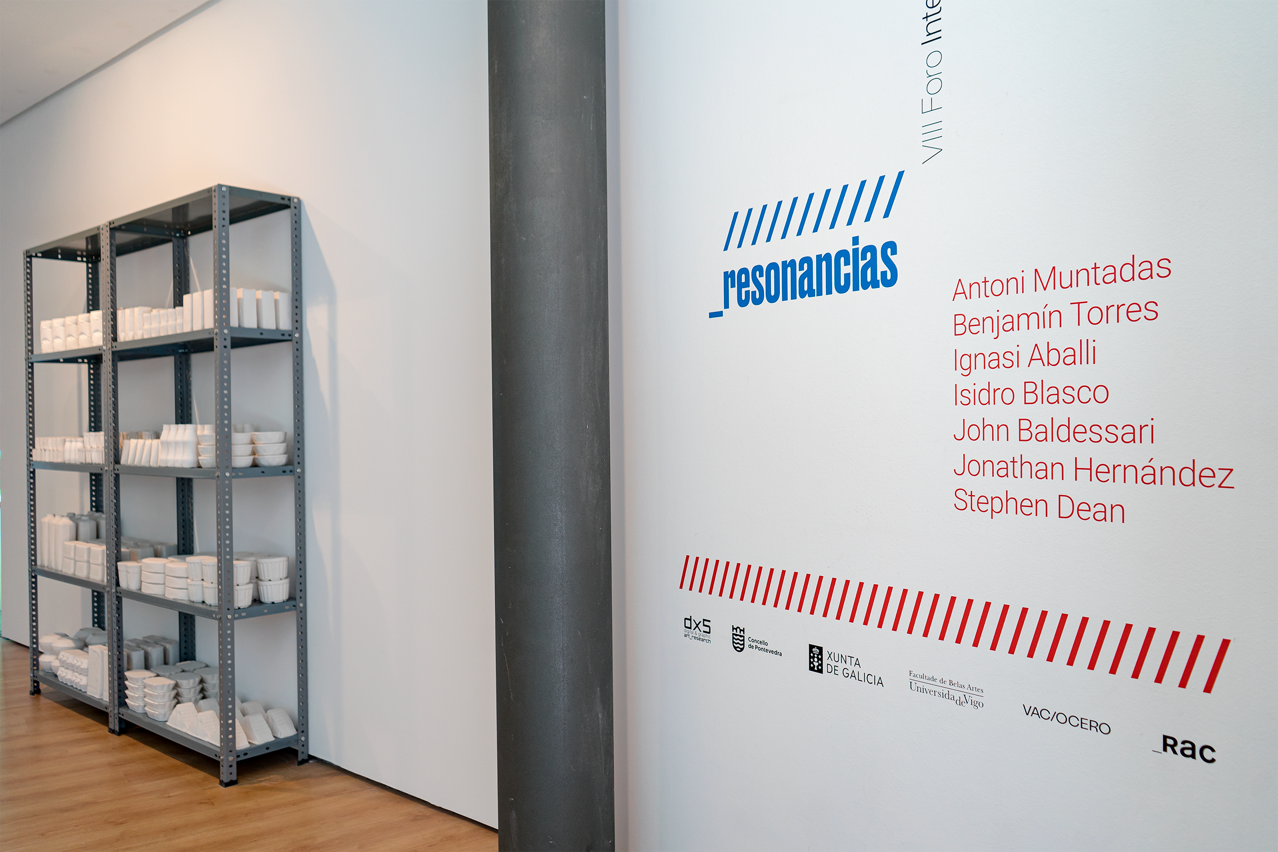 En la sede de la Fundación RAC, bajo el título _Resonancias, se expone una selección de fondos de la colección representada por siete artistas de reconocido prestigio en el panorama nacional e internacional. Nombres como Stephen Dean, Isidro Blasco, Ignasi Aballí, Antonio Muntadas, Benjamín Torres, Jonathan Hernández o John Baldessari. Nos hablan en esta muestra colectiva de diferentes apreciaciones y percepciones del sentido de lo múltiple que ocupa el espacio en la contemporaneidad. Es significativo comprobar como las obras de estos artistas, provenientes de una colección privada de arte contemporáneo cumplen con los fundamentos de este Foro después de que ya estén generadas y formuladas desde pautas de multiplexación formal, conceptual o procesual. Este dato nos habla de la actualidad de la selección realizada desde la colección y de la pertinencia del tema protagonista del Foro.